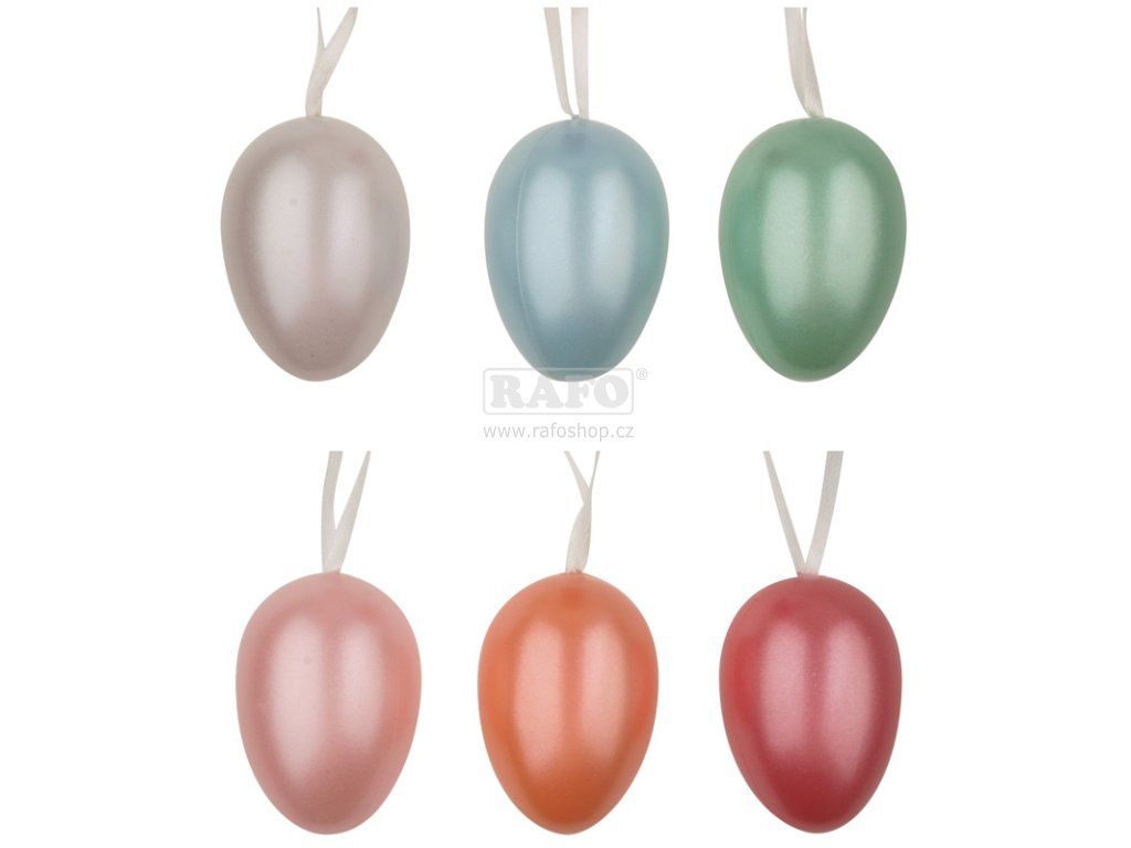 Vajíčka plastová barevná, lesklá - na zavěšení 6 cm - 6 ks - 9944. Vajíčka plastová na zavěšení balená v sáčku. Velikonoční dekoraceDoplňkové parametry