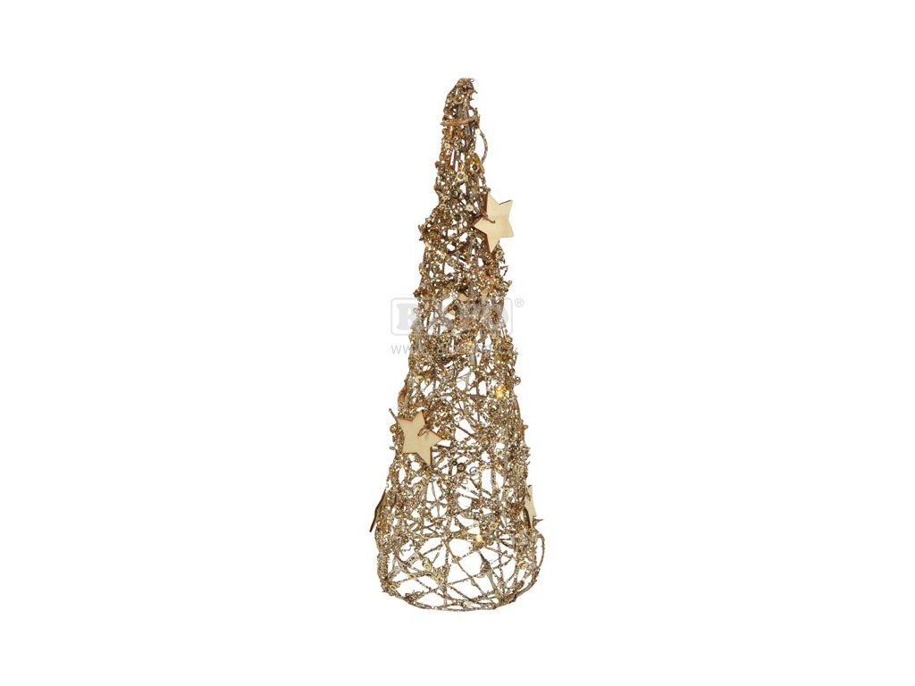 Vánoční, ratanový stromek, který je vysoký 30 cm a je zdobený zlatými hvězdami, je vhodný jako dekorace do interiéru nebo do exteriéru.Doplňkové parametry