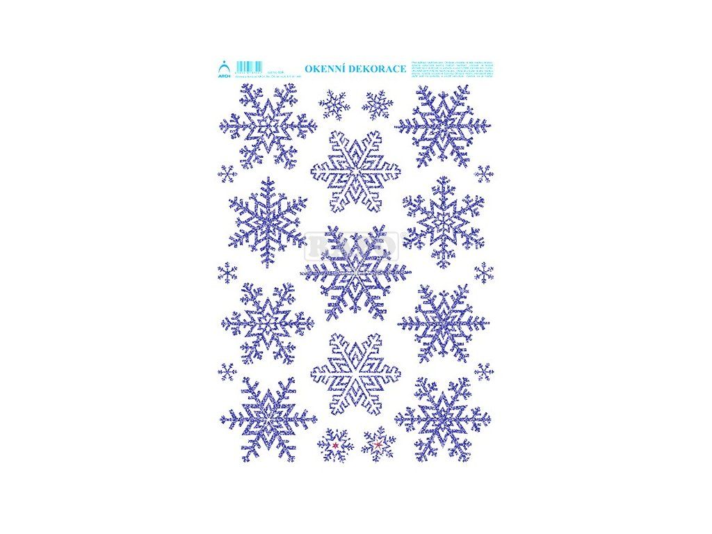 Vánoční okenní adhezní nálepky na sklo. Český výrobek - folie perfektně drží a po sundání nezanechá stopy. Tisk modrými glitry, viditelný z obou stran. Dekorace na každé okno. Rozměr : 32 x 25 cm.Doplňkové parametry