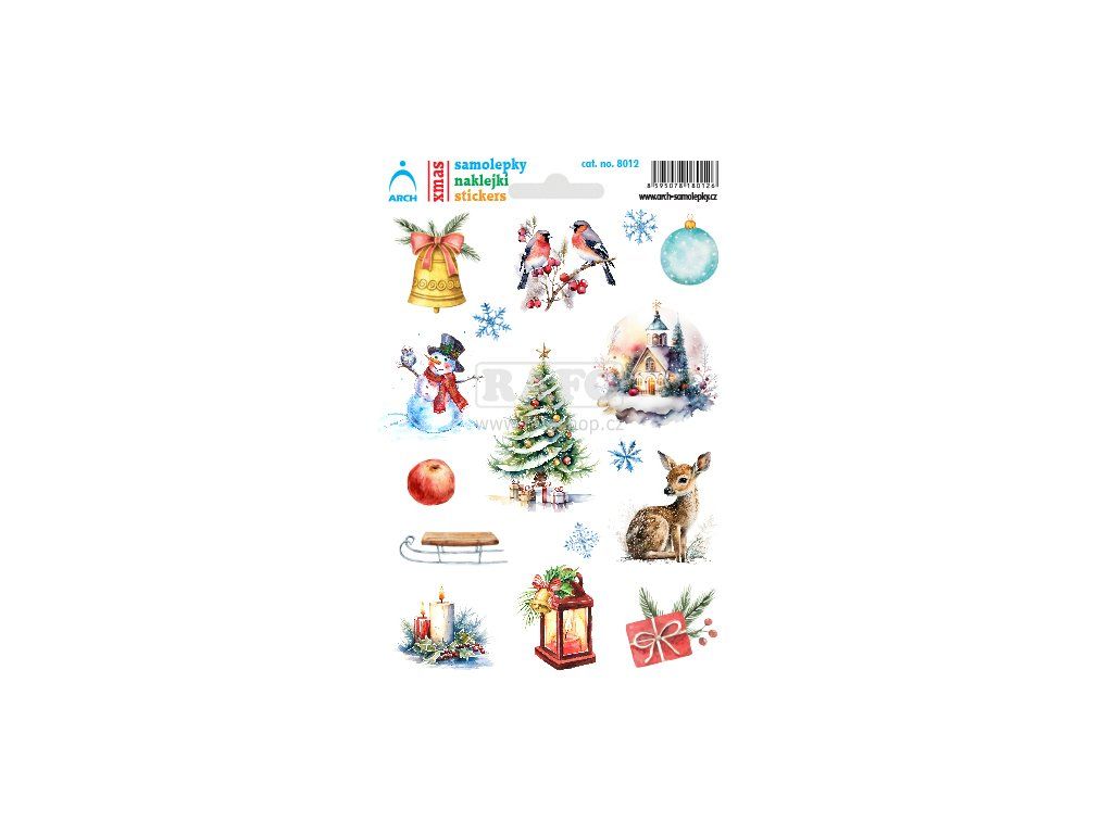 Krásně malované samolepky s vánoční tématikou, 1 arch - 12 ks samolepek.Doplňkové parametry