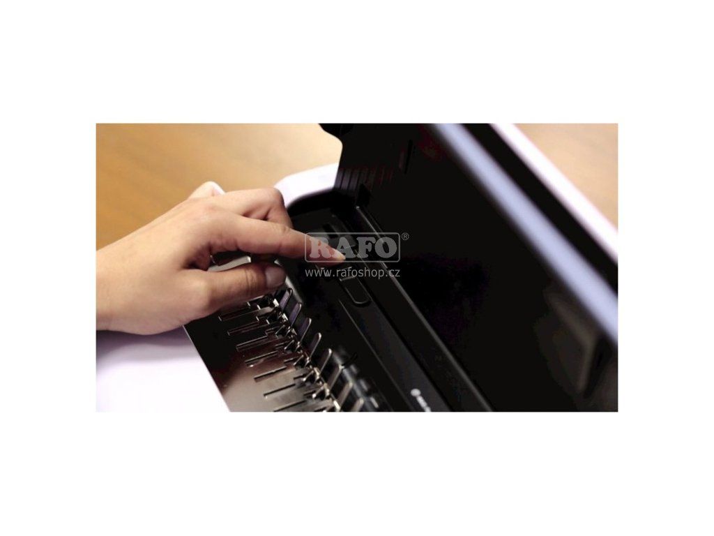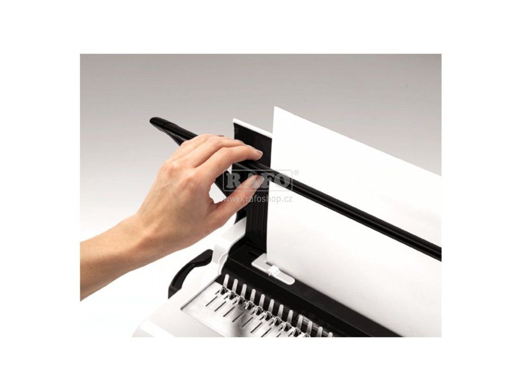 Druhý mechanický model designove i funkcne velmi zdarilé rady vázacích stroju Fellowes. Kapacitne vhodný jako osobní vazac pro kancelárské použití. Derovací kapacita až 15 listu 80 g papíru. Kapacita vazby až 150 listu ( do velikosti hrbetu 19 mm). Oddelená ergonomická derovací a vázací páka pro prubežné vkládání derovaných listu do plastového hrbetu výrazne zefektivnuje práci. Vkládání derovaných listu shora pro snadné setresení a tím bezchybnou perforaci. Stroj je vybaven zásobníkem na uložení nekolika plastových hrbetu a integrovanou merkou pro správnou volbu prumeru hrbetu. Na celní strane stroje je pruzor pro snadnou kontrolu zaplnení odpadního prostoru. Pracovní šířka 300 mm, děrovací kapacita 15 listů 80g papíru, max. rozměr hřbetu 19 mm, pohon děrování ruční. Rozměry (š x h x v): 45 x 28 x 8 cm. Váha: 4,26 kg.Doplňkové parametry