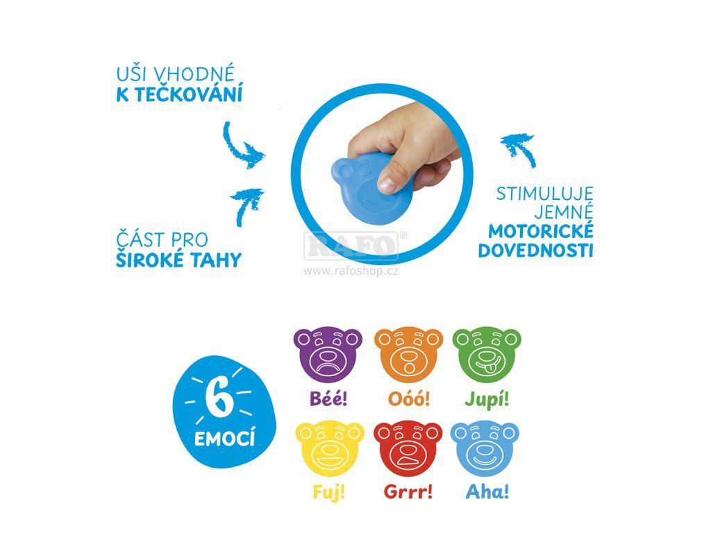 Rozvíjejte kreativitu, fantazii a šikovné ručičky těch nejmenších. Sortiment Carioca Baby je určený pro děti od 12 do 36 měsíců, je nejen bezpečný a nezávadný, ale také plný barev a radosti z objevování. Vytvořeno s láskou k dětskému tvoření pro malé umělce, kteří si rádi hrají a rostou s každým uměleckým dílem. Tyto roztomilé voskovky ve tvaru medvídka jsou ideální pro děti od 12 měsíců. Speciálně navržený tvar podporuje správný úchop a usnadňuje první kreativní pokusy. Každá barva je spojena s emocí, což přináší zábavu i poznávání. Uši medvídka vytvářejí hravé tečky, zatímco široká část umožňuje kreslit dlouhé tahy. S jasnými a zářivými odstíny bude každé tvoření plné radosti. Pro děti mladší 3 let doporučujeme dohled dospělých – a trochu obdivu nad jejich prvním mistrovským dílem! • ergonomický tvarovaný, poutavý tvar medvídka • hravé a zábavné • jasné a zářivé barvy • podpora nácviku úchopu a rozvoj motorikyDoplňkové parametry