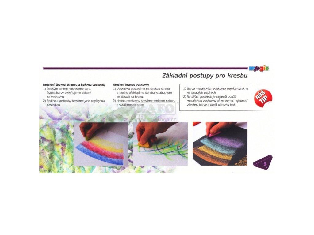 Základem pro výrobu jsou kvalitní barevné pigmenty přírodní vosky včetně včelího(množství pigmentu v jedné voskovce je mnohonásobně větší než v jiných voskovkách). Trojboké voskovky jsou nelámavé, vysoce odolné - pevné, nebarví prsty a jsou netoxické. Sada obsahuje 6 barev.Doplňkové parametry