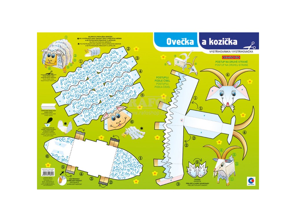 Vystřihovánka ovečky a kozičky, procvičí motoriku a soustředění u dětí. Obsahuje návod ke složení modelu.Doplňkové parametry