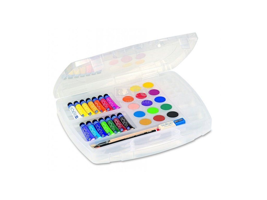 Výtvarný víceúčelový kufřík. Sada obsahuje 14 temperových barev, 15 vodových barev, 2štětce, 1 tužka, 1 guma, 1 ořezávátko. TIP NA DÁREK!Doplňkové parametry