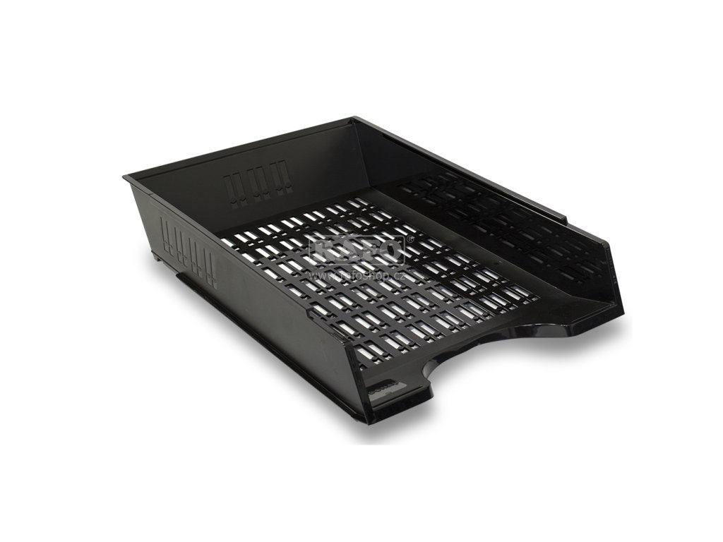 Kancelářský děrovaný odkladač na dokumenty formátu A4. Materiál: odolný polystyren. Masivní a odolné provedení s max. nosností 10 kg. Prostor pro štítky (nejsou součástí balení). Odkladače lze prakticky kombinovat a kaskádově vrstvit. Vnější rozměry: 256x70x370 mm, vnitřní rozměry: 238x49x330 mm. Barva: černáDoplňkové parametry